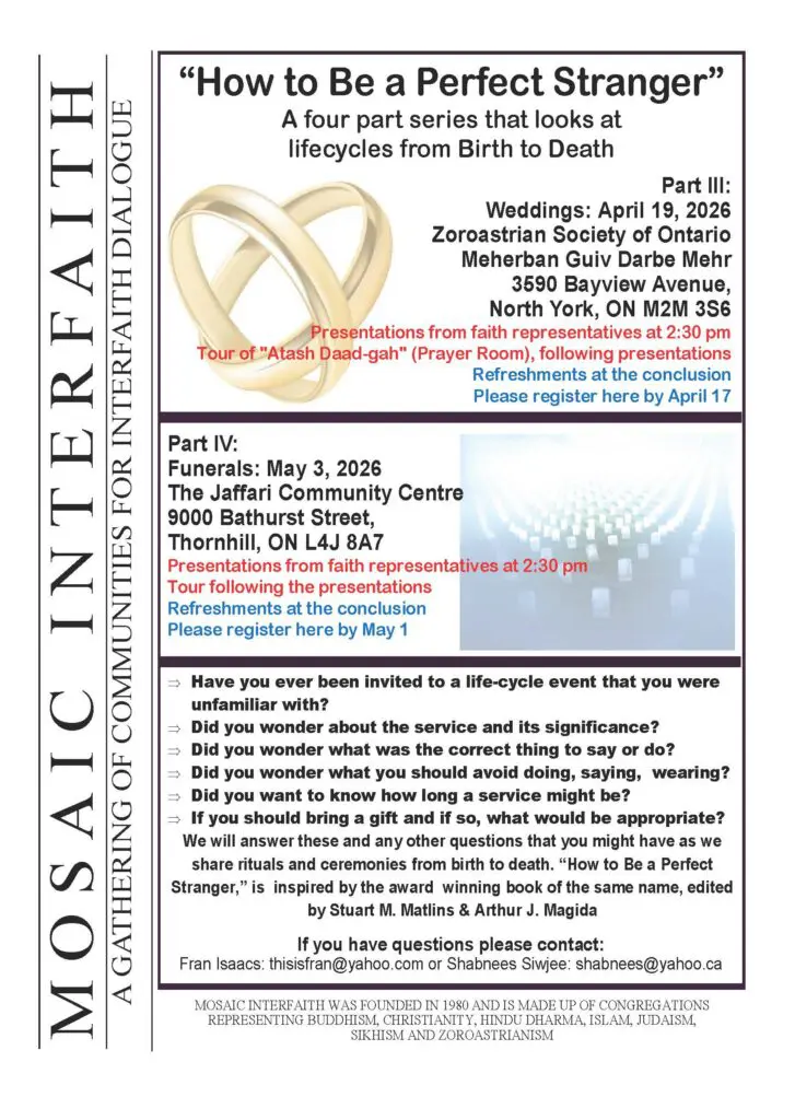 We will answer these and any other questions that you might have as we share rituals and ceremonies from birth to death.