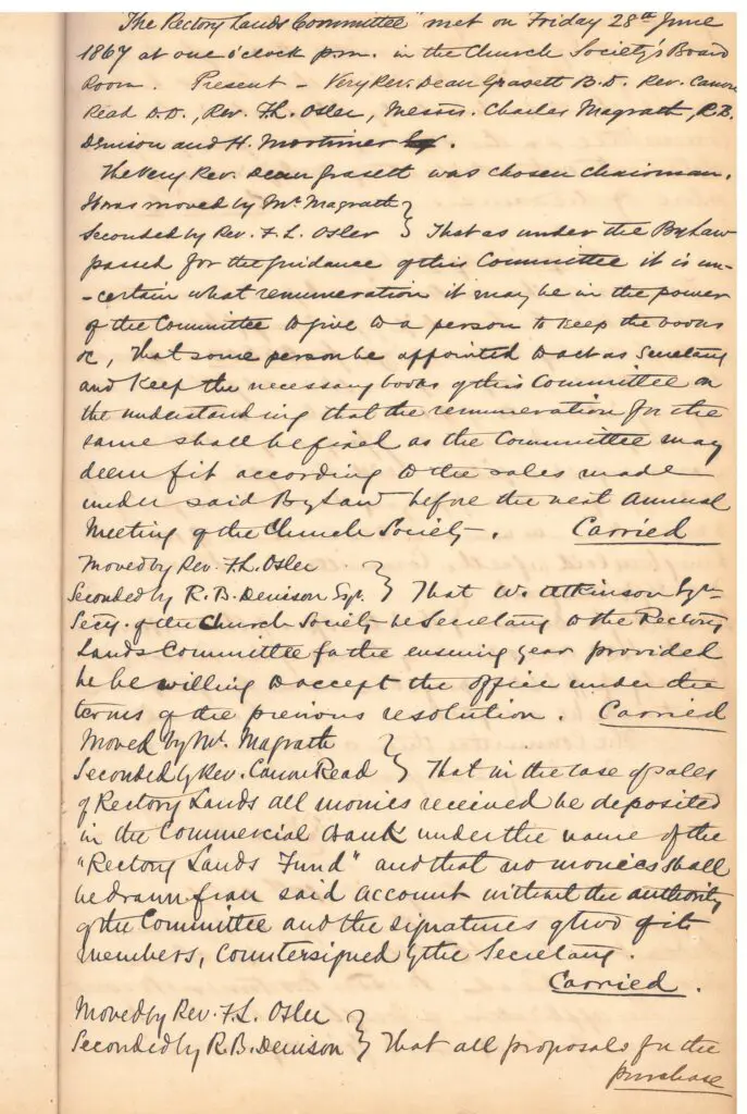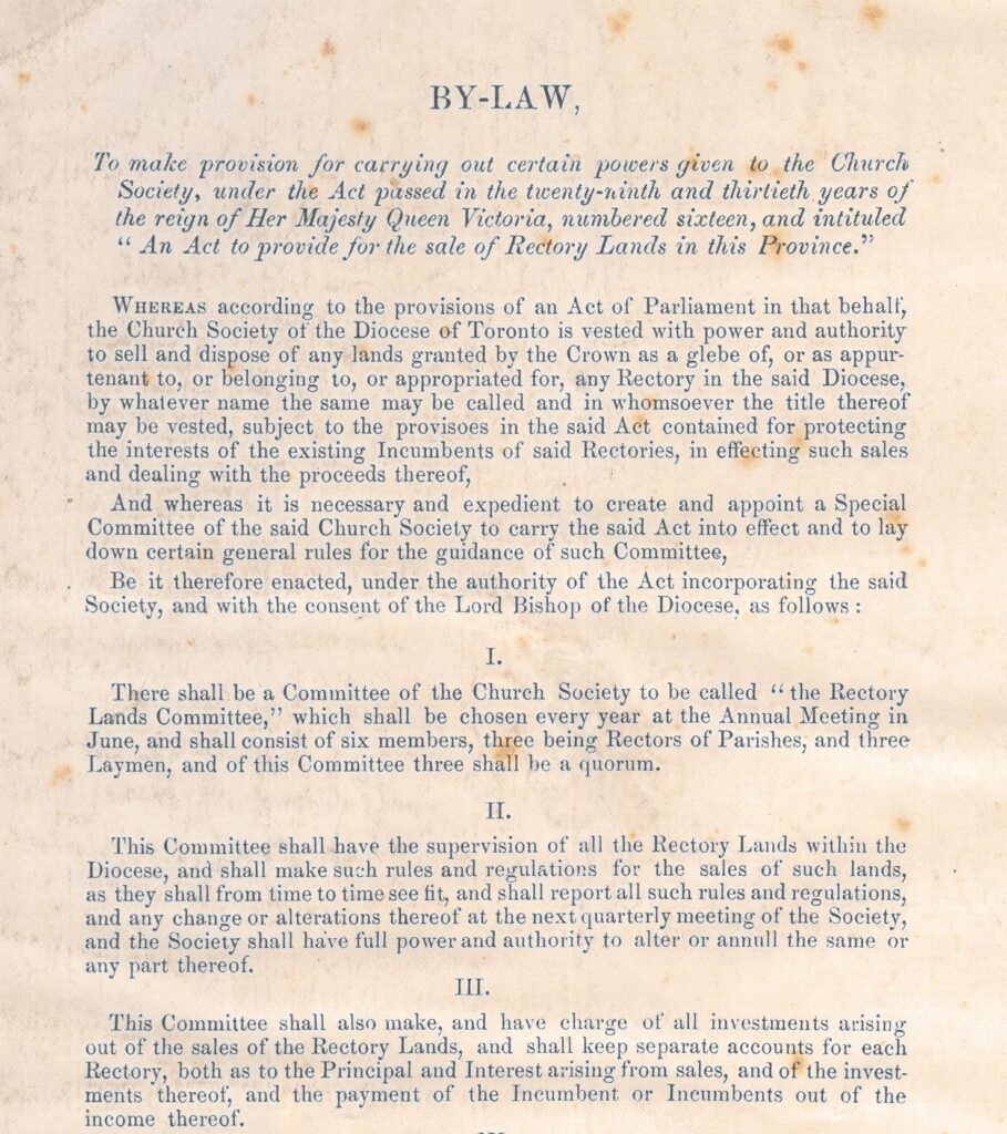 To ensure that the proceeds of sale were properly managed, the the Church Society of the Diocese of Toronto enacted a bylaw to establish the Rectory Lands Committee.