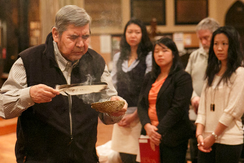 With the haunting beat of a drum as accompaniment, more than 130 people took part in a vigil for the Earth on Jan. 16 at Holy Trinity, Trinity Square, Toronto. They prayed in the four directions and sang songs of thanksgiving to God for the gift of water. Instead of receiving communion, they joined indigenous Bishop Mark MacDonald in a ceremony of thanksgiving for water, followed by an invitation for all to come forward and drink a cup of water from a font.